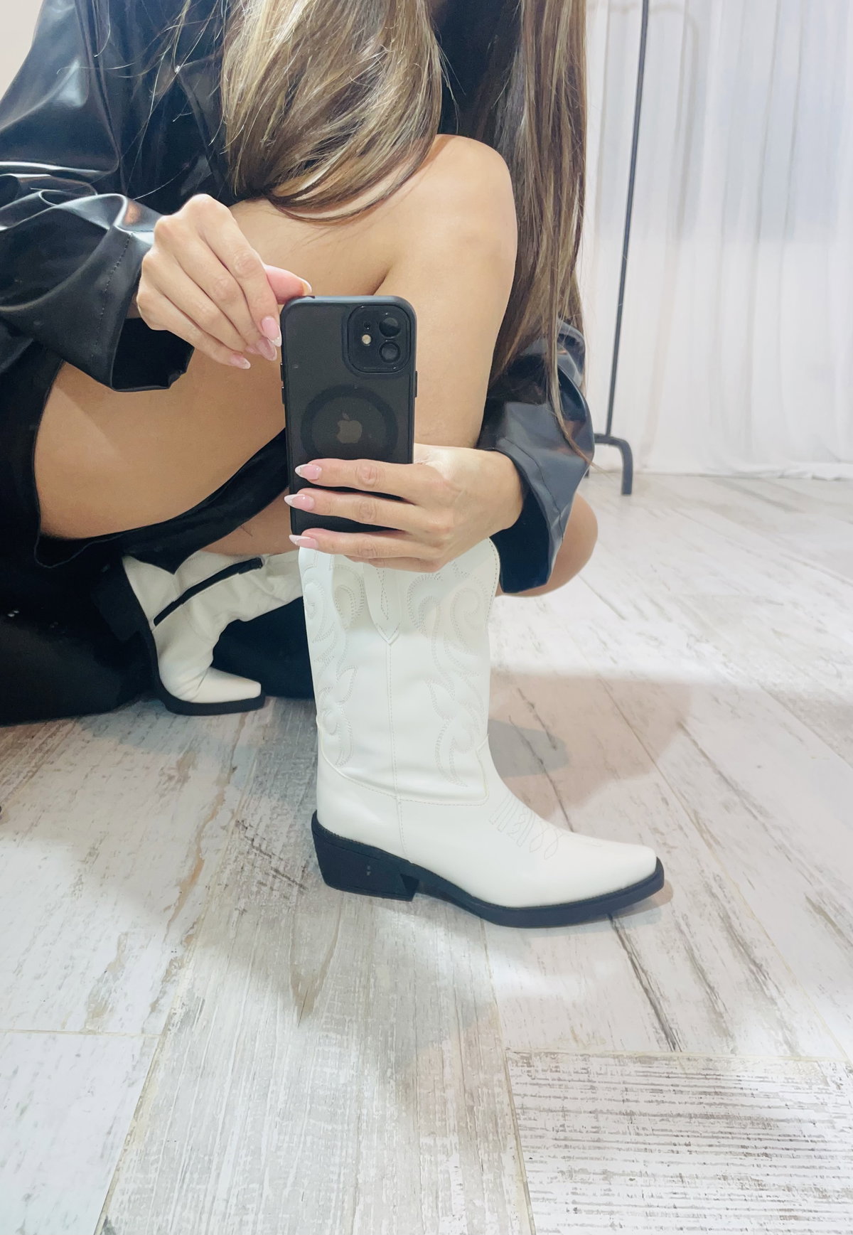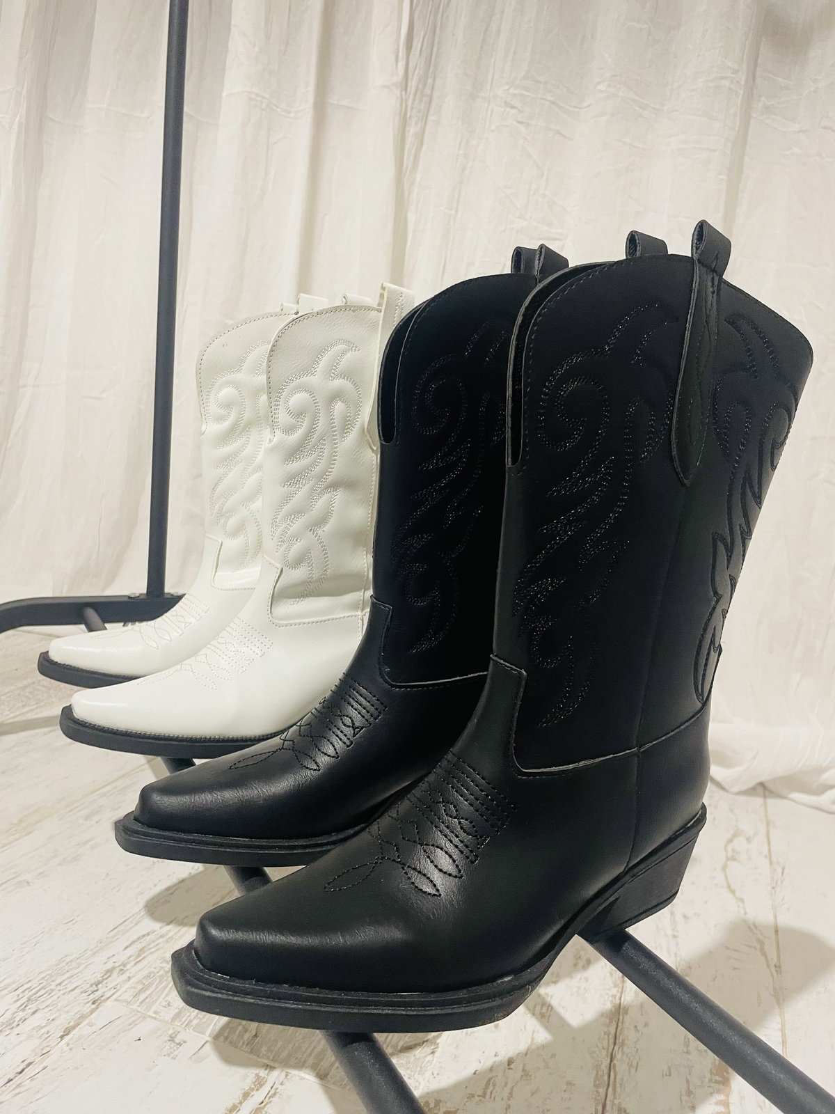 Botas texanas caña media, bordadas, con cierre lateral.
