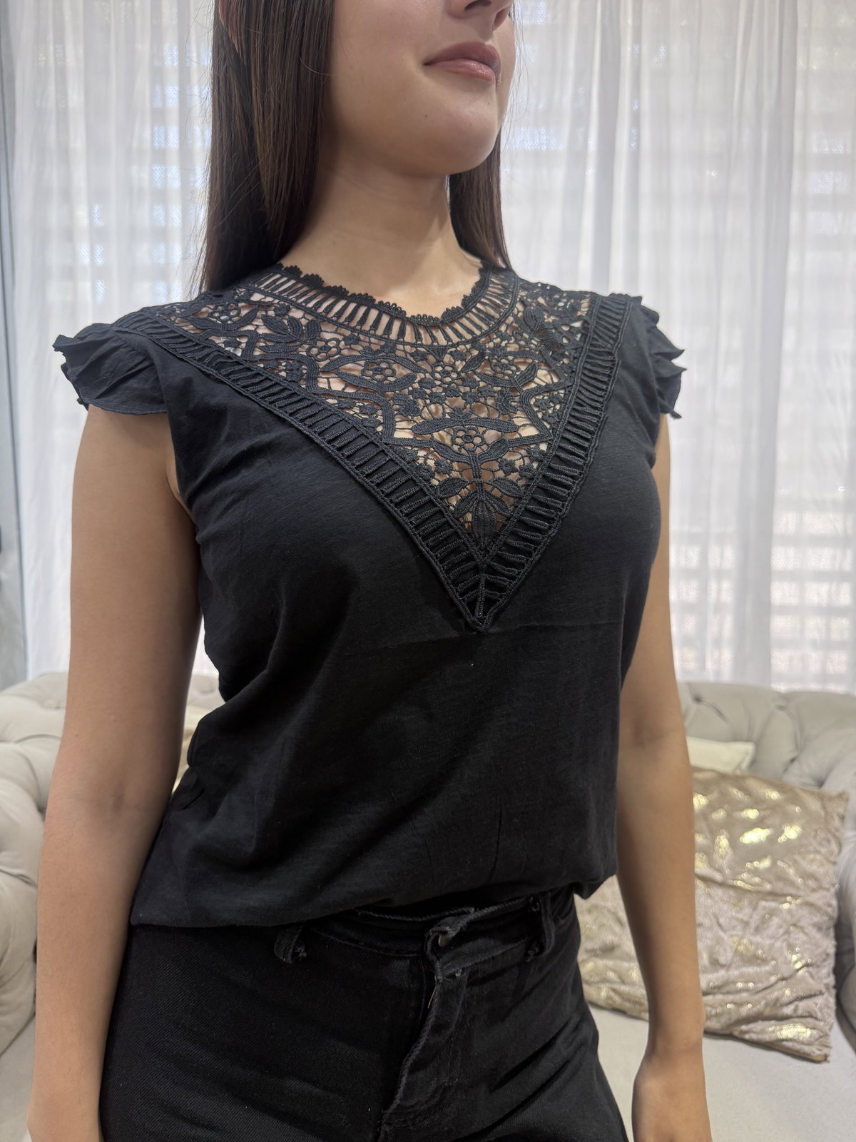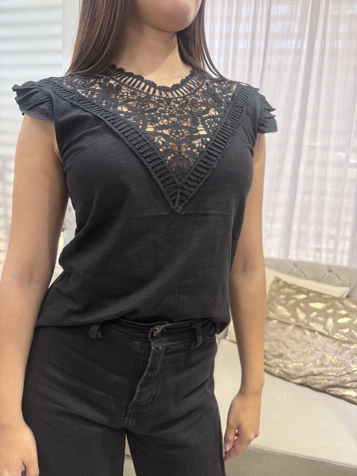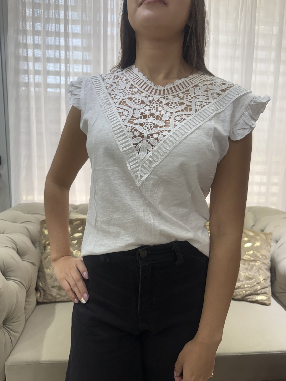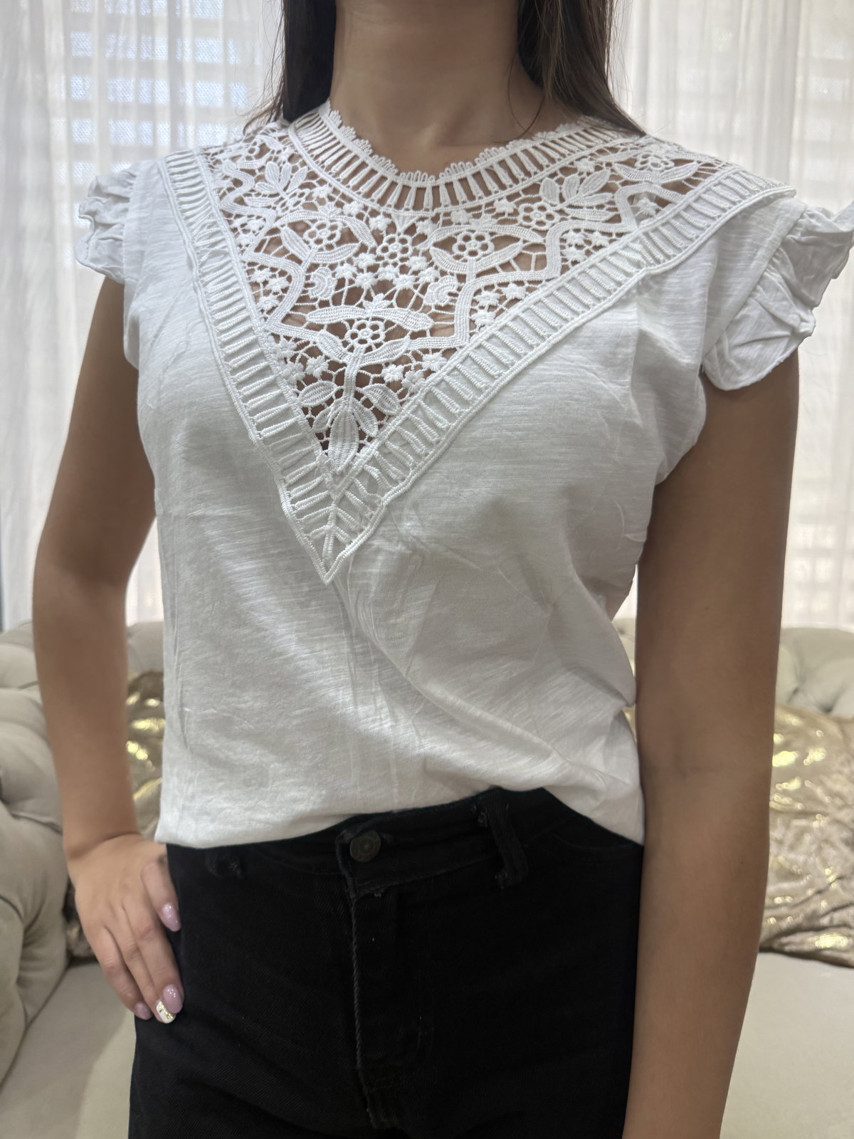 Remera escote bordado, liviana y fresca.