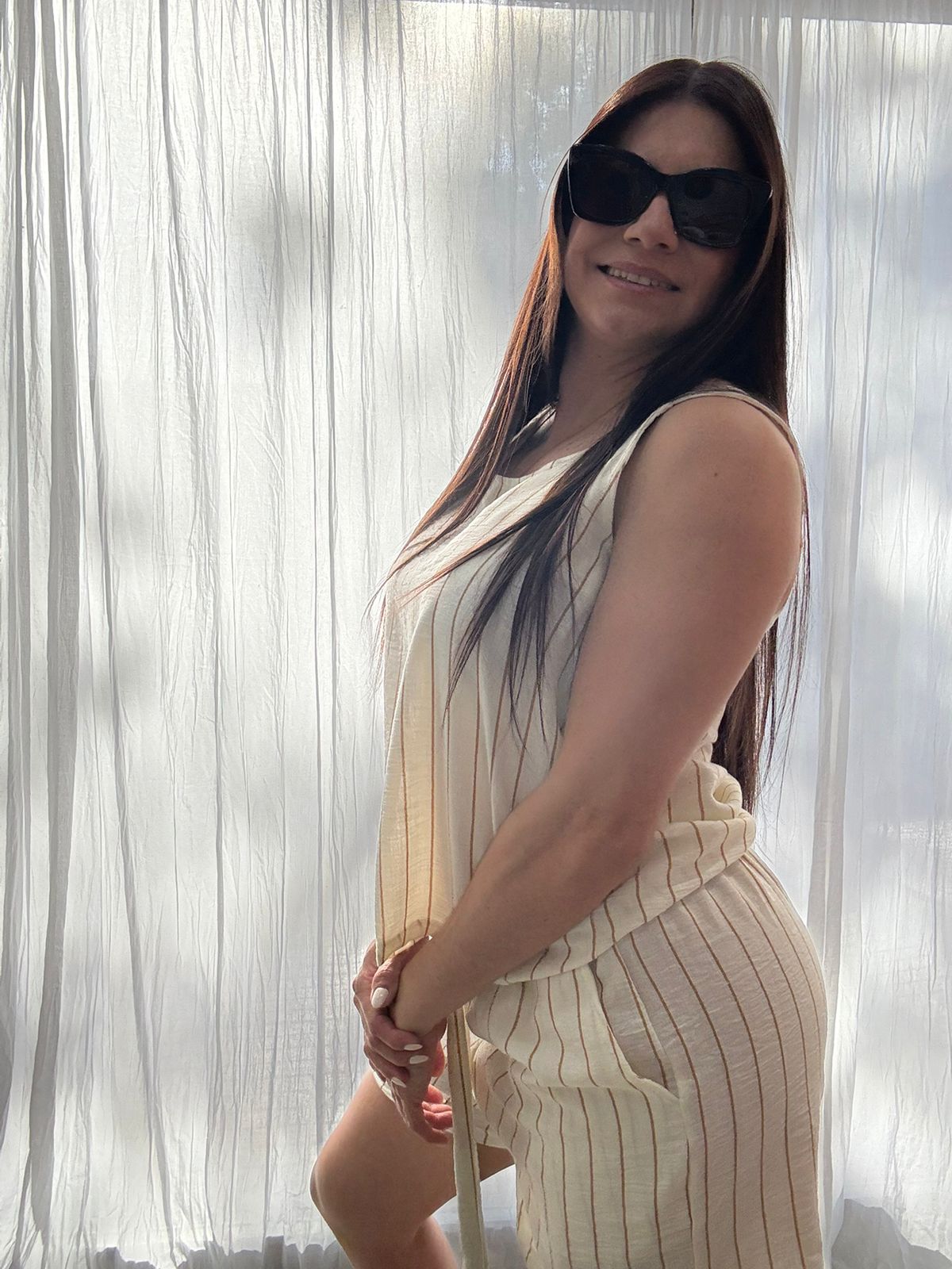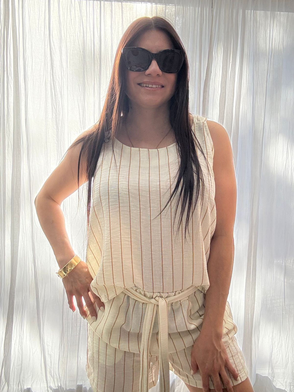 Musculosa lino blanca con rayas beige, tela super comoda ideal para esta temporada