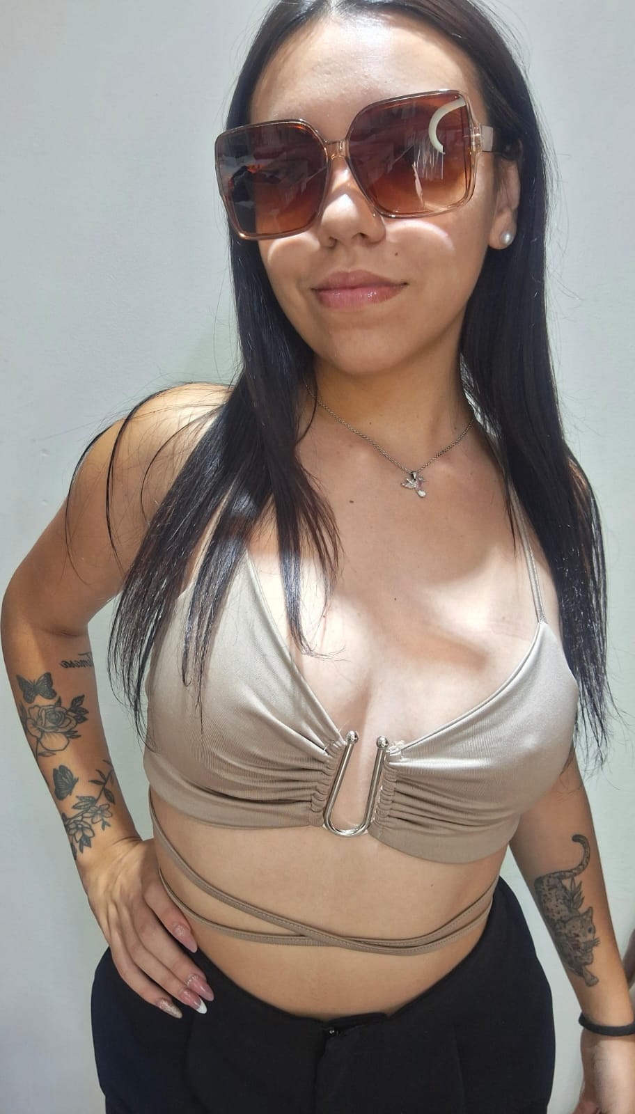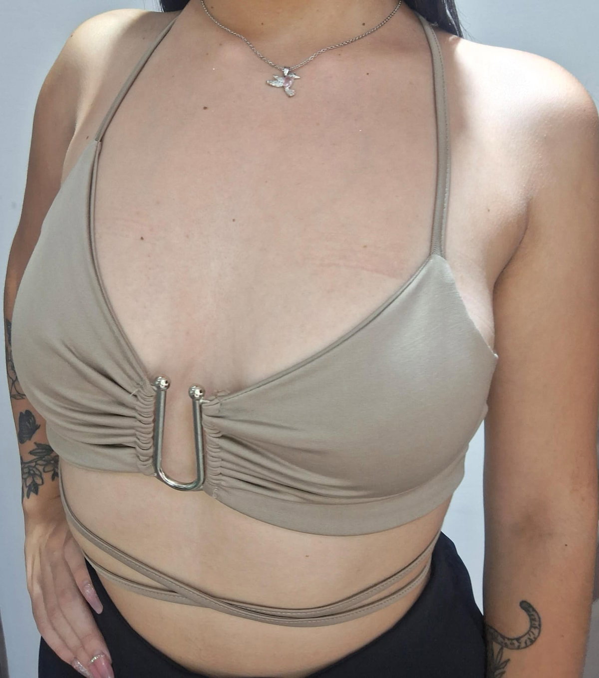 Top color topo, con un detalle de una hebilla en color plateado.