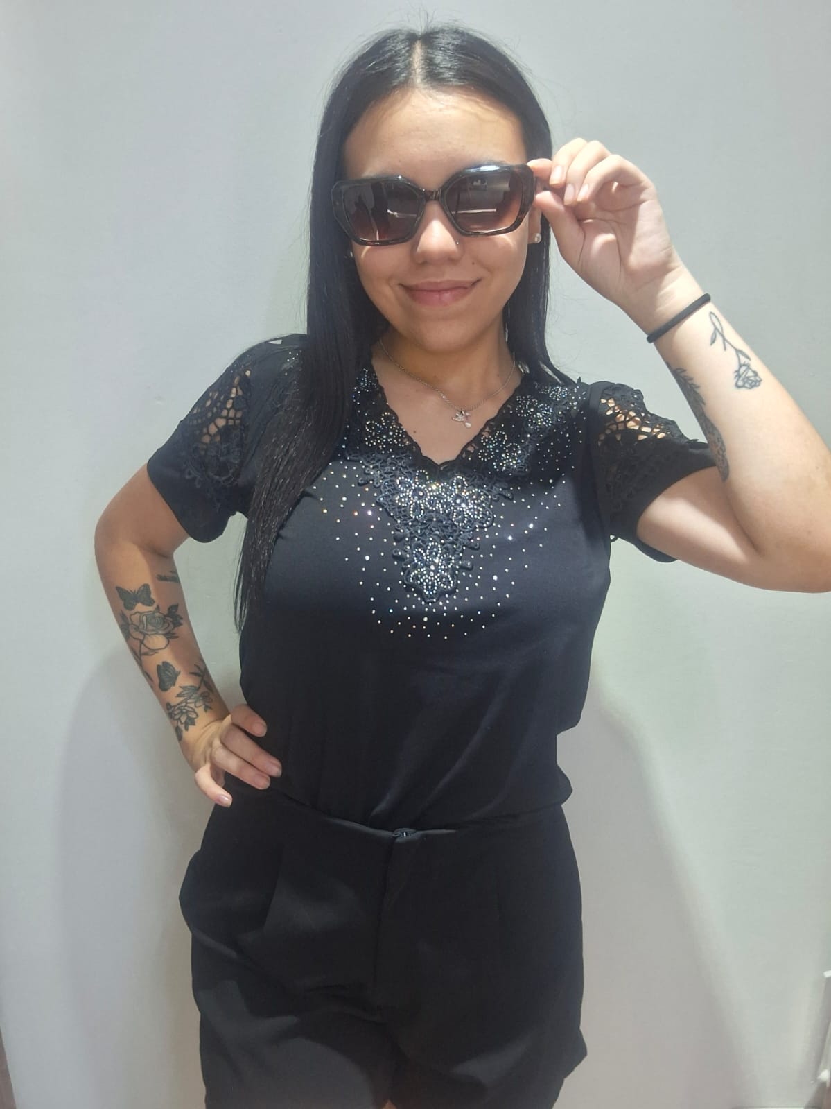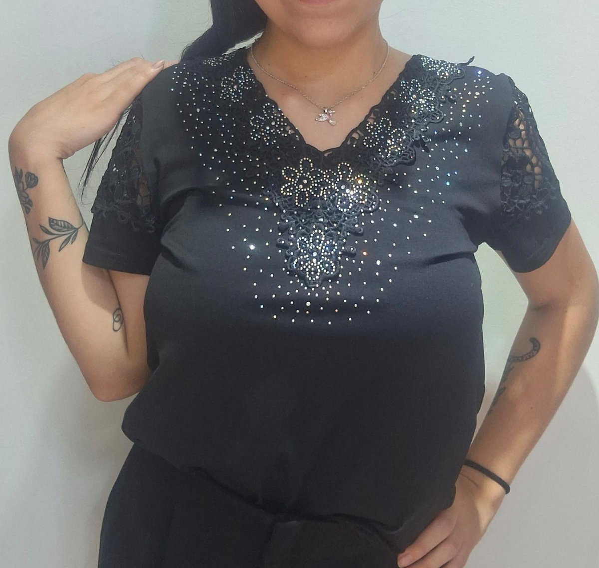 Remera crochet negra, ideal para eventos de noche super delicada