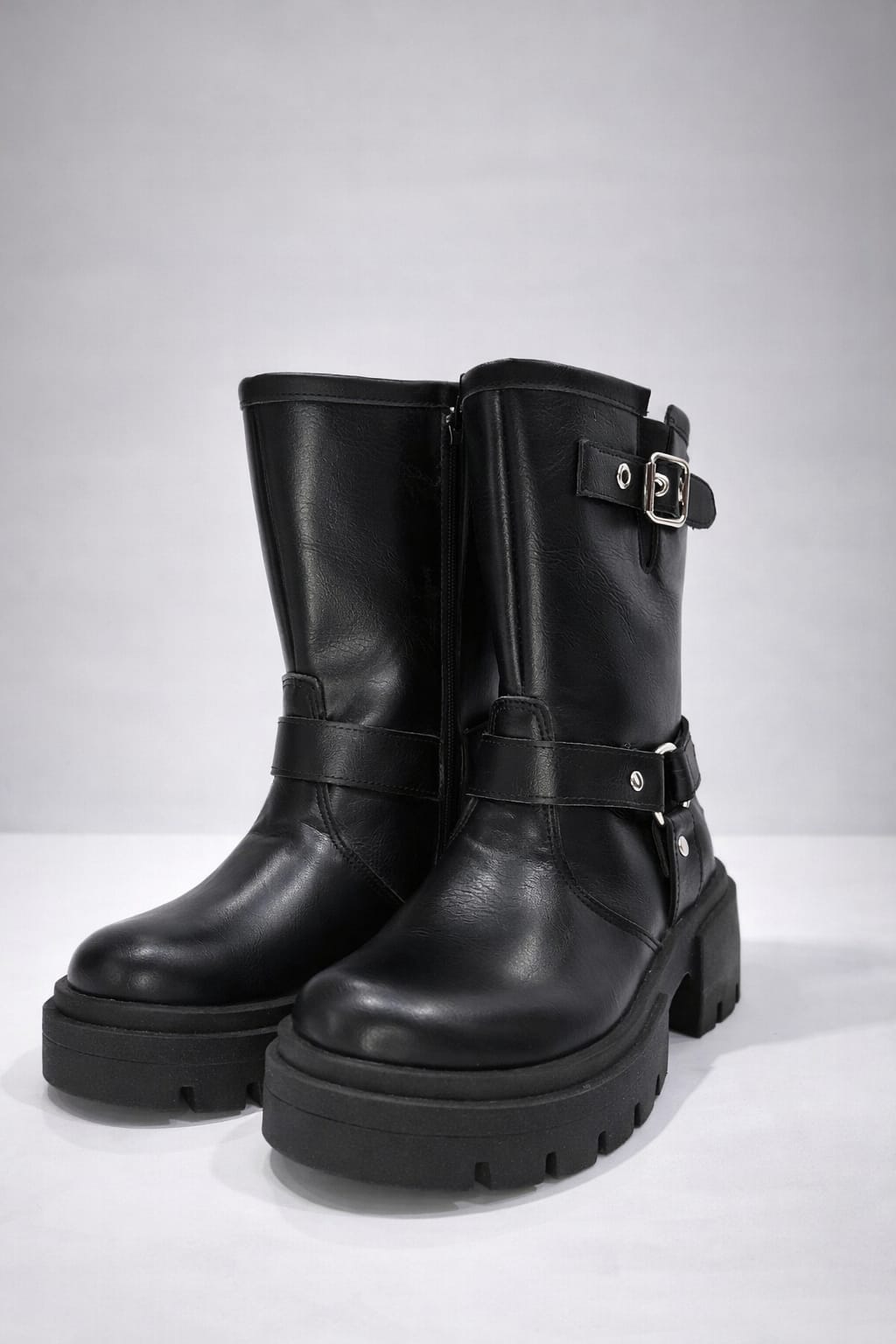 Bota con hebilla circular negra, super elegante para cualquier tipo de evento.