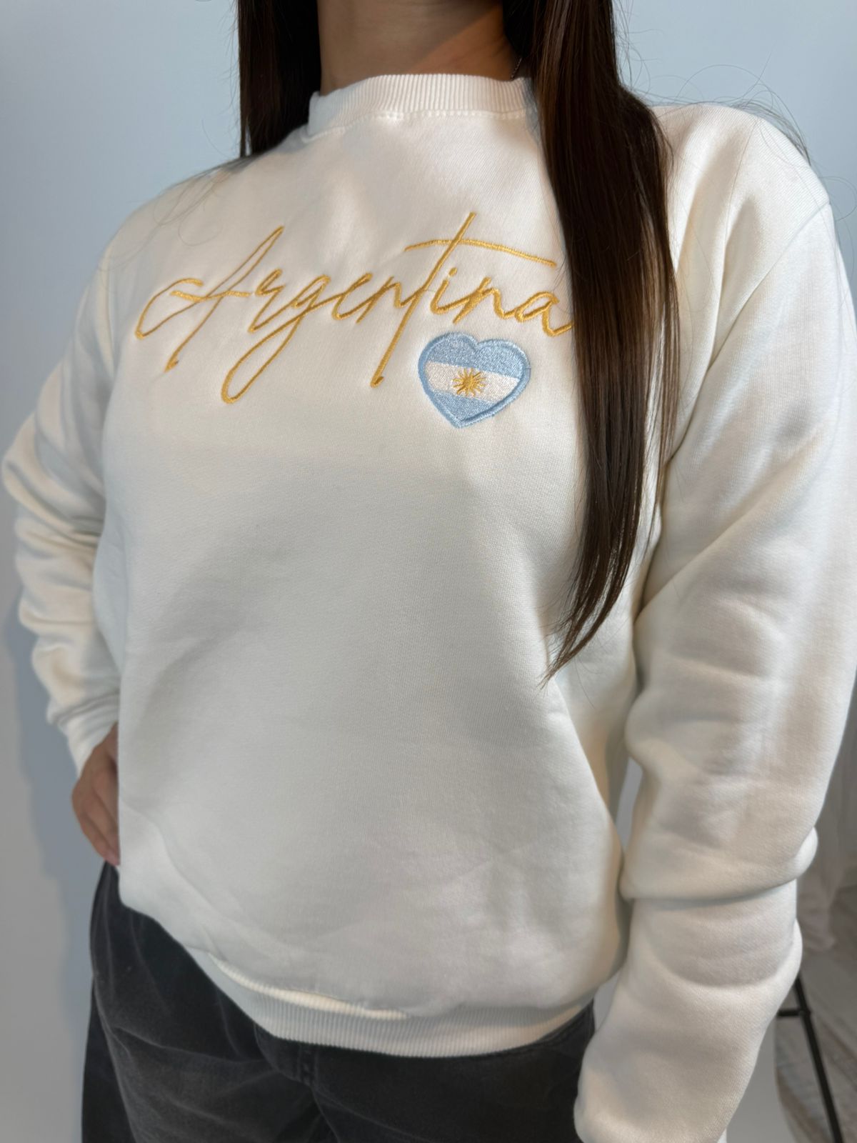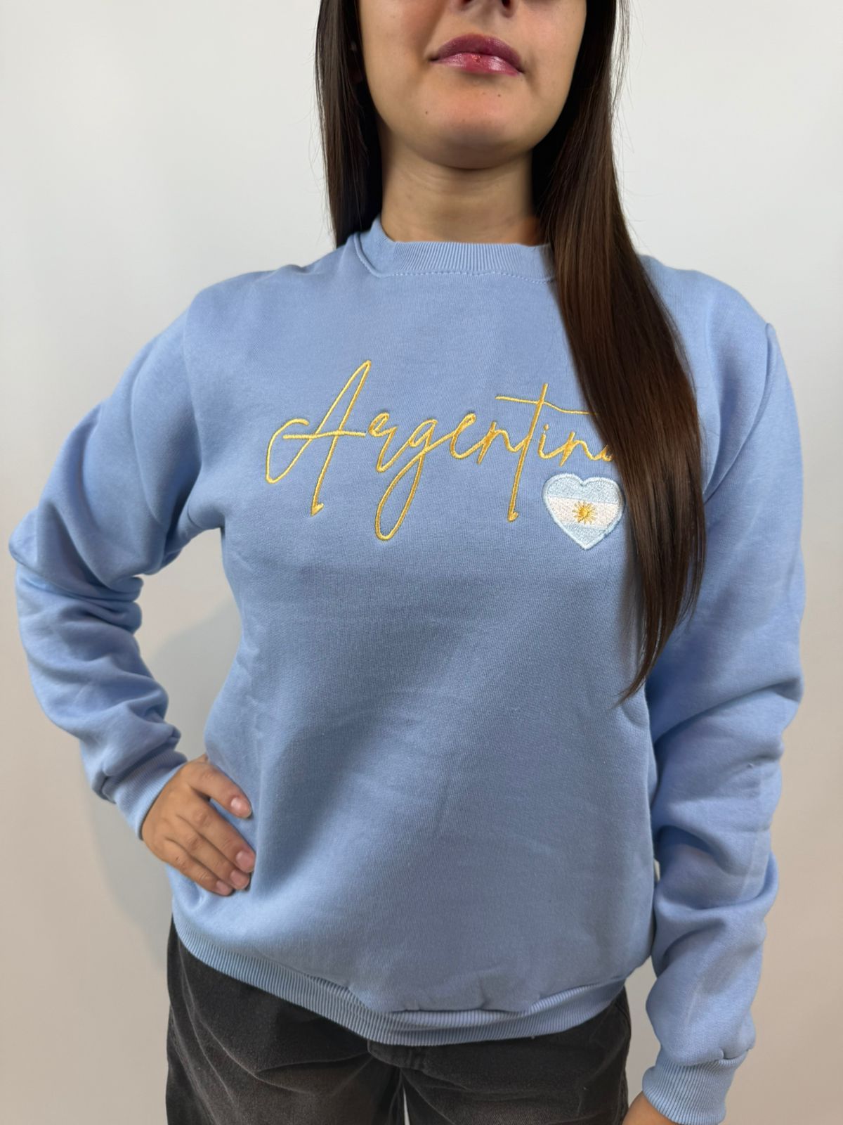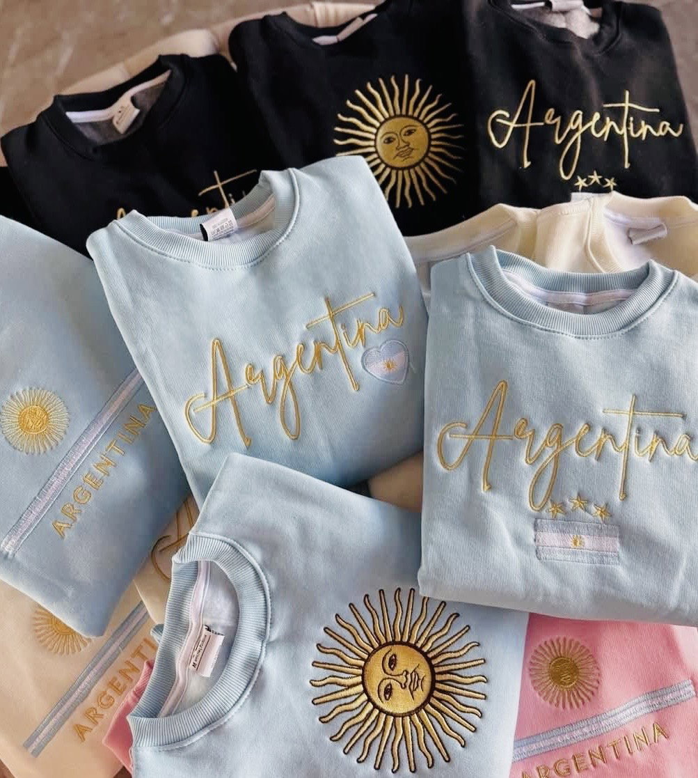 Buzo de algodón premium frisado, con distintos diseños bordados de Argentina.