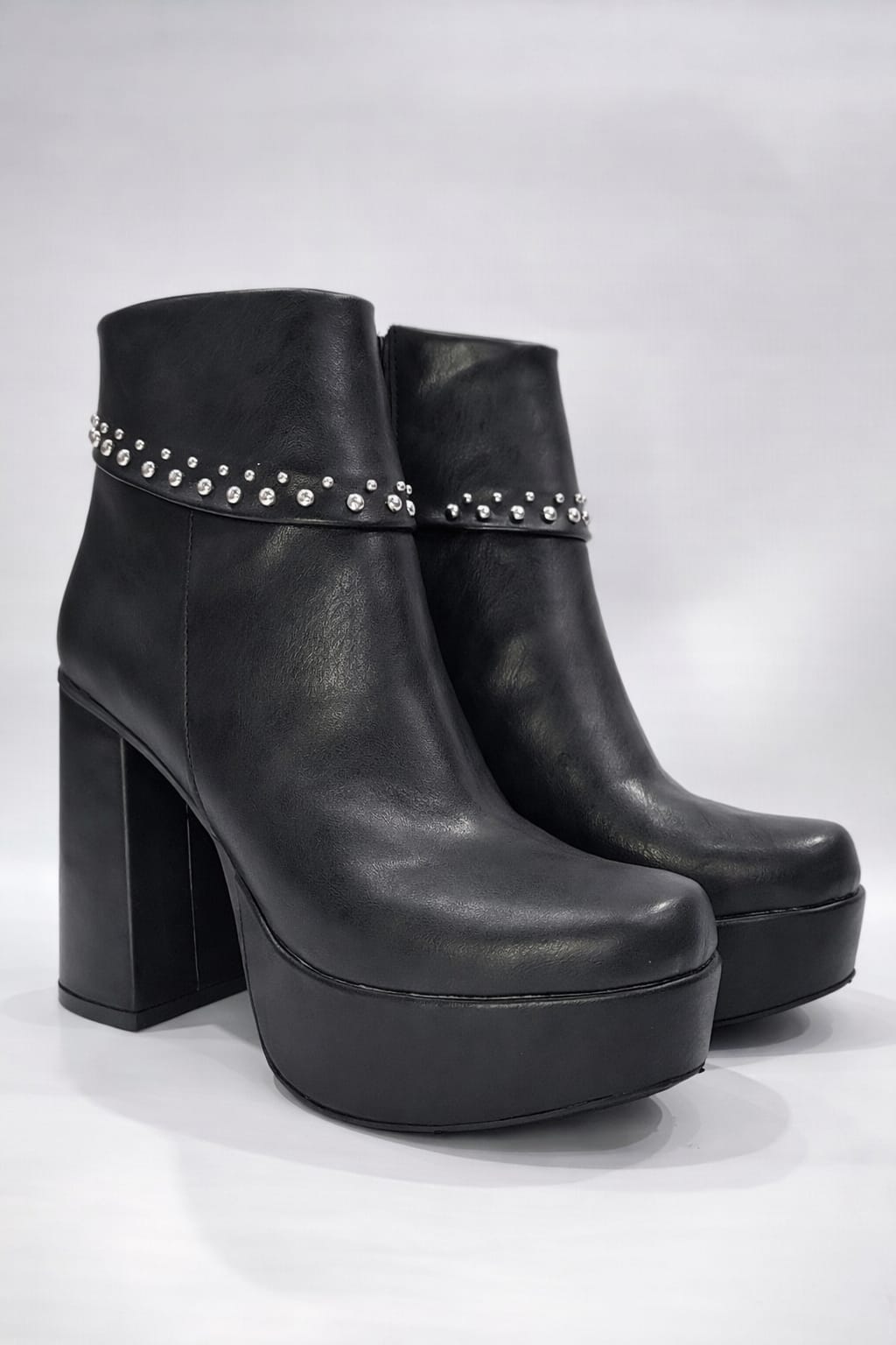 Zapato con taco super elegante negro con perlitas, ideal para la noche.